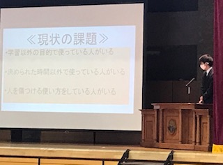 委員会が2年生に引き継がれ、約二か月半が経ちましたが、活動を反省し改善点を全校生徒に伝えようと努力しています。今日は、通常の委員会に加えて、学芸実行委員会、ICT委員会からの報告もありました。学芸実行委員会からは久我山青光学園との交流、合唱コンクールでサポーターをしてくれた生徒への労いの言葉がありました。ICT委員会からは、まだルールが守れていない人がいること、ルールを守れている人にも自分事として考えて欲しいなど提案がありました。