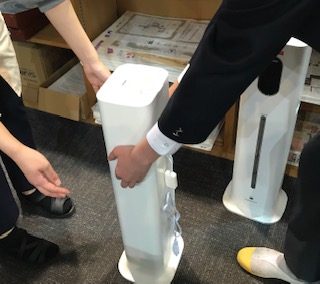 昨年、PTAより寄贈された加湿器を今年も使う時期となりました。使い方、手入れについて説明して、保健委員が各学級に加湿器を設置しました。PTAで買っていただいた加湿器です。大切に今年も使っていきます。