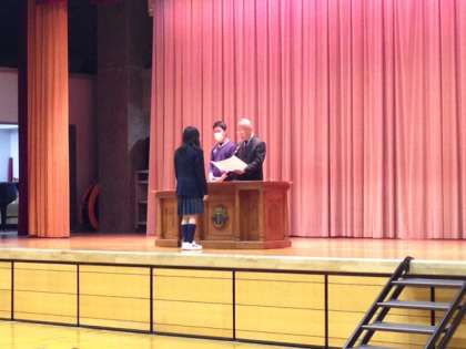 生命保険作文コンクールで1年生と3年生が、それぞれ東京都で2等、3等に入選しました。