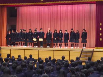 本日、生徒会朝会が行われました。生徒会長、各専門委員会委員長より11月の活動報告、12月の活動内容について報告をいたしました。