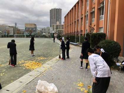 整美委員会で企画した落ち葉掃きも最終日です。ボランティアを募ったところ、95名の生徒から参加の申し出がありました。ボランティア精神が浸透してきた様です。
