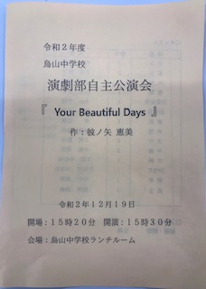 新型コロナウィルス感染症は演劇部にも影響し、今年は区の発表会も中止とってしまいました。そこで、これまでの稽古を披露する場として今日ランチルームで自主公演会を行いました。残念ながら、一般公開はできず、部員の保護者の方のみの公開としました。