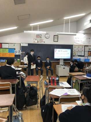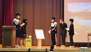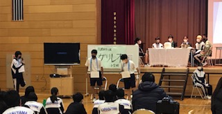 中止になった職場体験に代わり、職業探究学習を進めてきました。今日はパワーポイントや劇を交えて、これまでの学習の集大成の発表会を行いました。