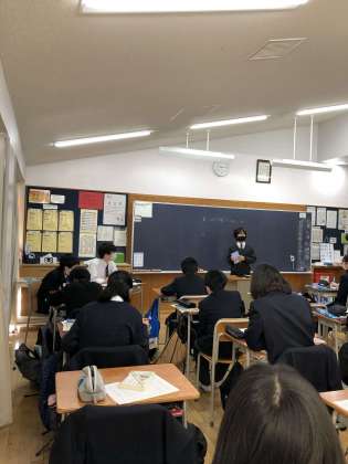 2年生は、職業講話のまとめとして、班で行った事後学習のまとめを発表しあいました。