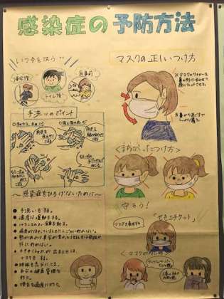 保健委員会でまとめた壁新聞を保健室前に掲示しています。感染予防のためにまとめたものですが、力作です。しっかり洗った手、アルコールで消毒した手、何もしていない手で食パンを触った時のカビの発生を根拠に、手の衛生について調べています。写真からわかるでしょうか?