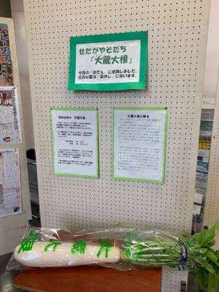 本日の給食のおでんに、世田谷育ちの「大蔵大根」が使用されました。立派な大根です。柔らかくて美味しかったです。
