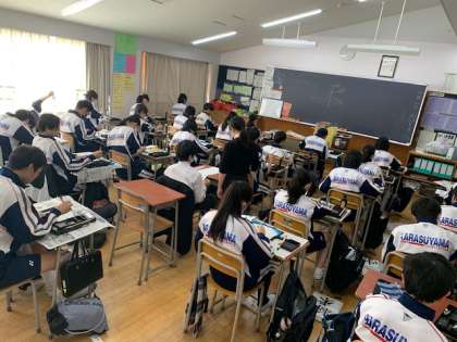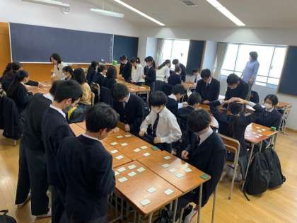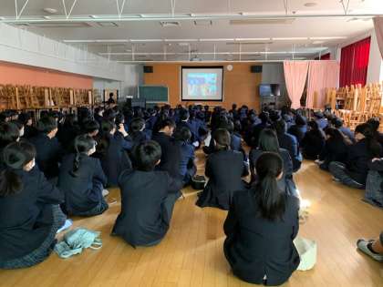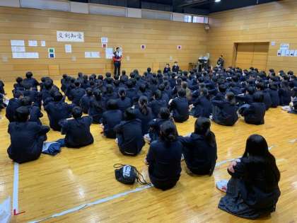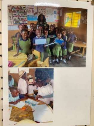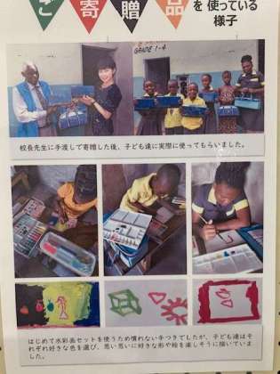 生徒会の活動で、ザンビアの学校に水彩画のセットを寄贈しました。現地の学校の子どもたちが楽しそうに絵を描いている写真やお礼状をいただきました。ゆくゆくは、世界子ども絵画コンテスト等への作品の応募を目指したいとのことです。