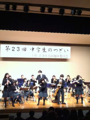 第2部、烏山中吹奏楽部の演奏です。顧問の柳田先生の指揮のもと、「ナイトフライト」、AKB48の「会いたかった」を演奏しました。満場の拍手をいただきました。