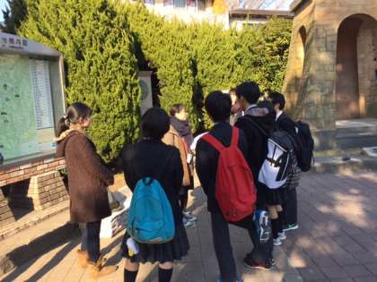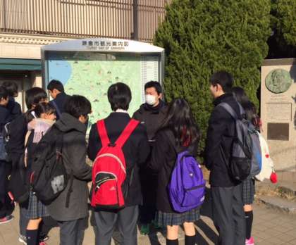 数日前の天気予報では、雪マーク。ちょっと心配しましたが、今日は絶好の良い天気。2年生は、何か?持っています。鎌倉班行動スタート!
