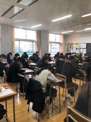 今週金曜日が、都立高校の入試です。廊下の掲示板には各校の倍率が掲示されていたり、検査日迄のカウントダウンも表示されていますが、各教室では問題演習を中心とした授業が進んでいます。
