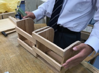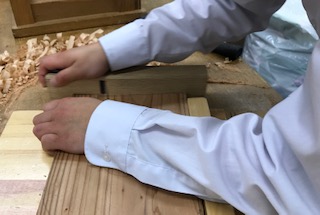 毎年一年生は木材加工を行いますが、市販のキットではなく、杉の一枚板から部材を切り出し作品を作っています。