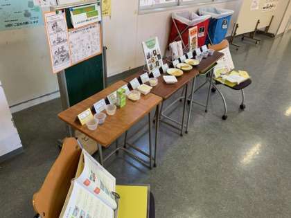 栄養士さんが、大豆の栄養についてたくさんの見本や資料を展示しています。 -