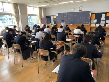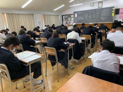 今日から期末考査です。今年度のまとめとなります。どのクラスも集中して取り組んでいます。