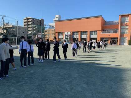 今日は地震を想定した、予告なしの訓練でした。素早い避難ができていました。