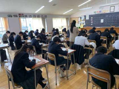 最後まで諦めずに取り組んでいます。3年生は中学校生活最後のテストですね。