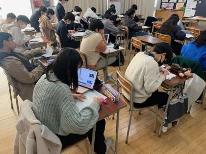 インフルエンザもだいぶ治まり、今年度最後のテストに真剣に取り組んでいます。