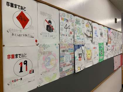 3年生の教室には、卒業までのカウントダウンが掲示されています。大事に過ごしてください。