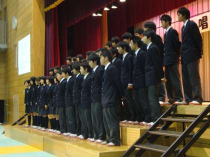 本日、卒業式の予行を行いました。卒業生とともに在校生も立派な態度で臨み、とりわけ、卒業生の「大地讃頌」・「道」・「旅立ちの日に」、在校生と合同合唱の「明日の空へ」は、感動の嵐です。立派で感動的な卒業式になると確信しました。予行の後に、産業奨励賞と体育優良生徒の表彰を行いました。