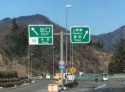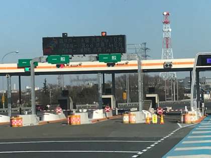 八王子料金所を通過しました。生徒は静かに映画を観ています。今のところ順調に走っています。
