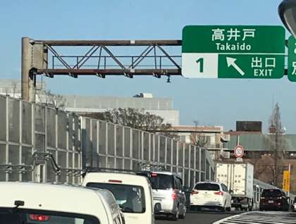 高井戸で高速をおりました。もう直ぐ烏山中学校ですが、一般道は混んでいるようです。ナビではあと10分程度です。