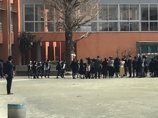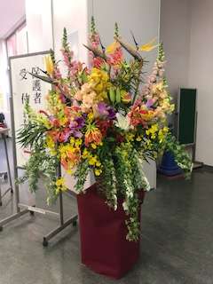 以前PTA役員をされていた地域の方が、立派な花籠を贈ってくださり、保護者の方の受付の場所に飾らせていただけました。 -