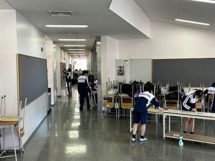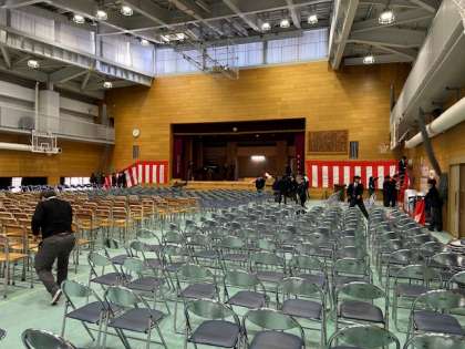 明日はいよいよ卒業式です。会場準備など1、2年生が丁寧に進めてくれました。準備は整いました。