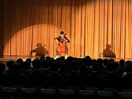 3年生の最後の学年集会でした。寸劇、ダンス、歌、チェロの独奏、歌の発表など楽しそうな様子で盛り上がっていました。先生へのお礼の言葉、思い出の動画など最後の時間を大切に共有しました。いい思い出になることでしょう。