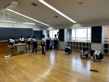 午後は、クリーニングデーでした。次の学年に引き継ぐので、皆一生懸命に綺麗にしていました。