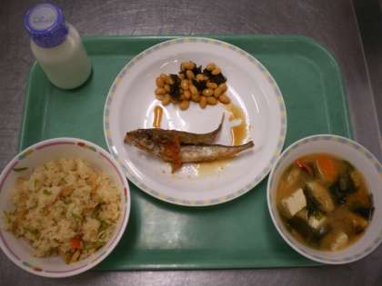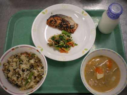 五目ごはん・魚の南部焼き・野菜のゴマみそかけ・呉汁