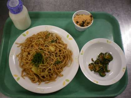 ソース焼きそば・きゅうりの中華味・よもぎ団子