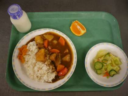 カレーライス・福神漬・野菜の甘酢かけ・オレンジ