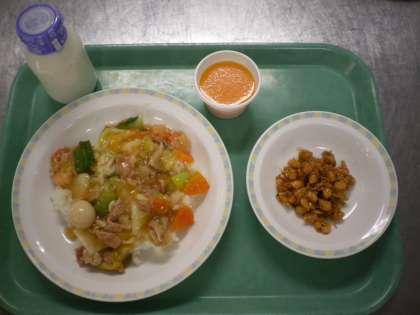 中華丼・大豆とじゃこの甘辛揚・キャロットゼリー