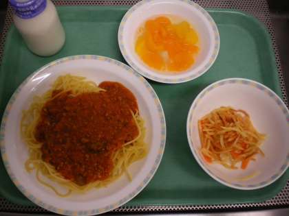 スパゲティミートソース・じゃがいものハニーサラダ・フルーツカクテル