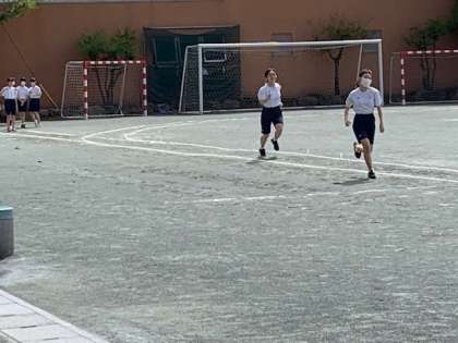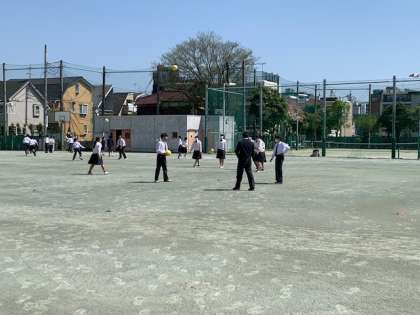 天気も良く、生徒たちは元気よく校庭で体を動かしています。しっかりリフレッシュして、午後の授業も集中して取り組みましょう。