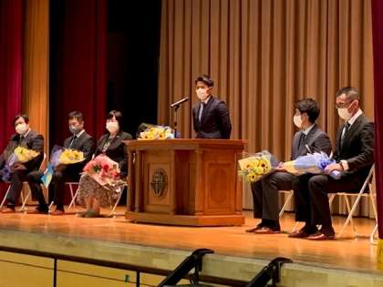 式では、涙あり笑いありのとても穏やかで、いい時間を過ごすことができました。異動された先生方に感謝の気持ちをもつとともに、皆さんで烏山中をさらに素晴らしい学校にしていこうという気持ちになりました。ありがとうございました。