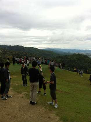 若草山山頂で、奈良市街の眺望のもと、クラス写真を撮りました。