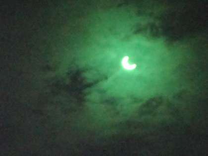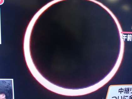 ※ 写真左は、太陽の右上が欠けていくようすです。右はテレビで中継された金環日食です。 -