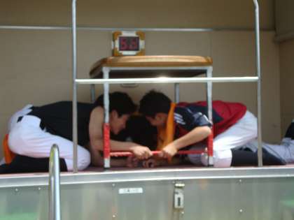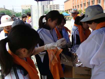 本日、烏山地域防災訓練が行われています。ボランティア部と野球部有志あわせて50名ほど参加しました。災害の時、中学生ができるお手伝いのよい訓練になりました。
