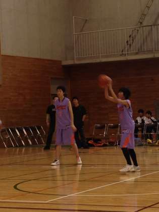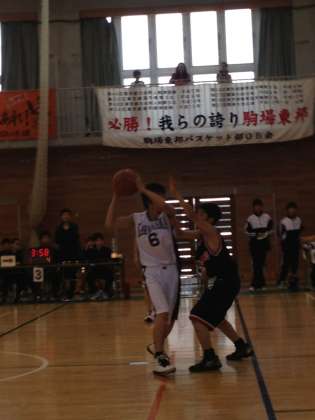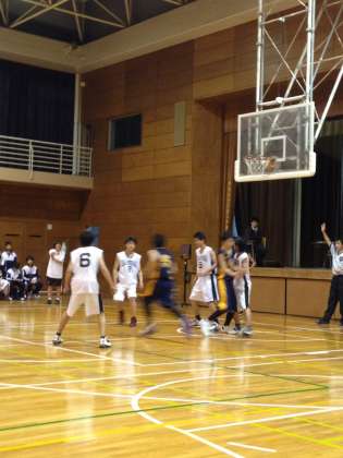 第二ブロック春季バスケットボール大会、男子、対三宿中前半リードしています。