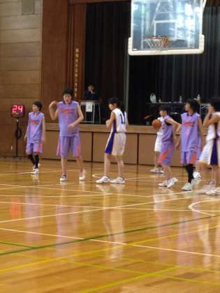 第二ブロック春季バスケットボール大会。女子一回戦、対笹塚中戦、前半終了、圧倒的な強さで勝っています。