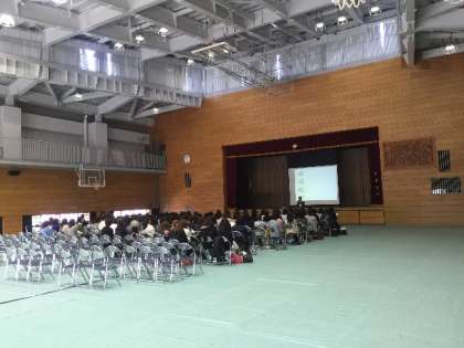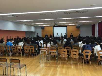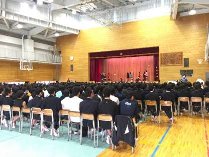 生徒会や委員会紹介をはじめ、部活動紹介が新入生歓迎会で行われました。