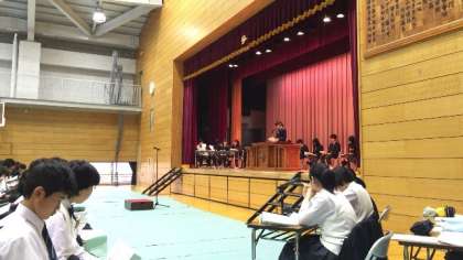 生徒会長をはじめ各委員長の前期活動方針案について、活発な意見や質問がありました。