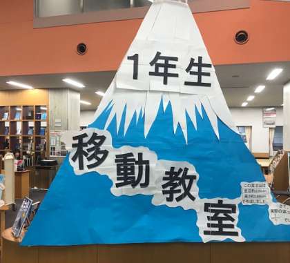 一般の学校の図書館に当たる情報学習室では、司書さんが授業だけでなく行事の事前学習でもお手伝いしていただいています。写真は一年生な河口湖移動教室関連の掲示物です。