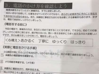 二年生は7月の職場体験に向け、各事業所に事前打合せのアポイントメントをとるため緊張しながら電話をしました。