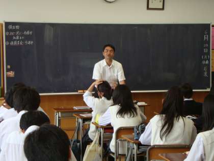 本日、3年D組で、成清主幹教諭(社会科)による教科「日本語」の研究授業が行われました。「日本文化」の「楽しむ(歌舞伎)」についての授業でした。歌舞伎が誕生する歴史的背景から授業が展開され、歌舞伎役者の猛稽古のすえ体得できる「息をつめる」・「間」について学びました。さらに、キャリア教育と絡めてまとめた授業でした。授業後の研究協議会では、五つのグループに分かれ、「食」と「住」からのテーマについて10分討議し、2分で発表しましたが、それぞれのグループの特徴がでた発表になりました。