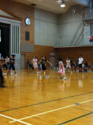 女子バスケ、八幡中と対戦。90対26で快勝。準決勝に駒を進めました。