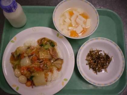 中華丼・アーモンドフィッシュ・杏仁豆腐