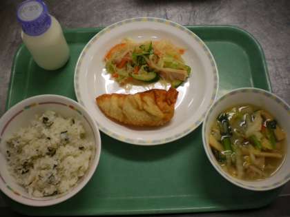 わかめとじゃこのごはん・揚げ餃子・春雨サラダ・中華スープ