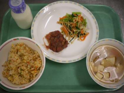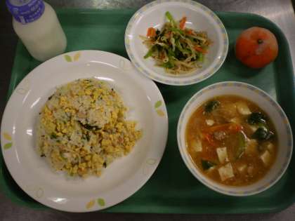 青菜チャーハン・麻婆汁・ナムル・冷凍みかん