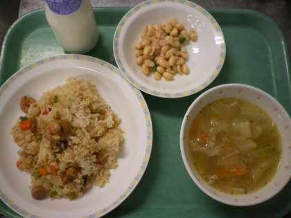 ジャンバラヤ・ヌードルスープ・ビーンズサラダ